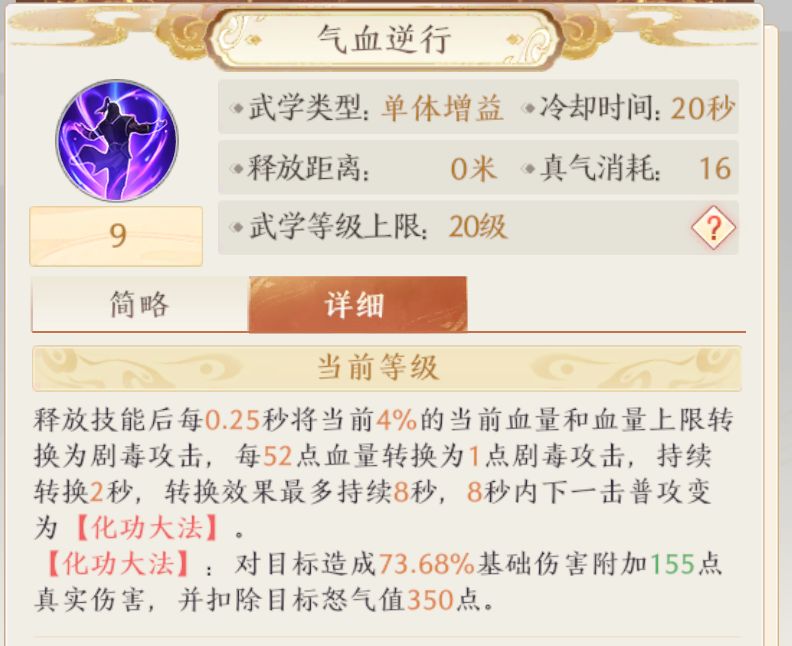 短短两秒内连续触发八次攻击,每次都能转换4%当前生命值和4%生命上限的属性攻击力,短时间内大幅提升输出,配合峨眉的群体回血与爆发技能,减抗效果叠加后,伤害输出极其惊人,20秒的小爆发阶段便能打出上万点属性攻击。